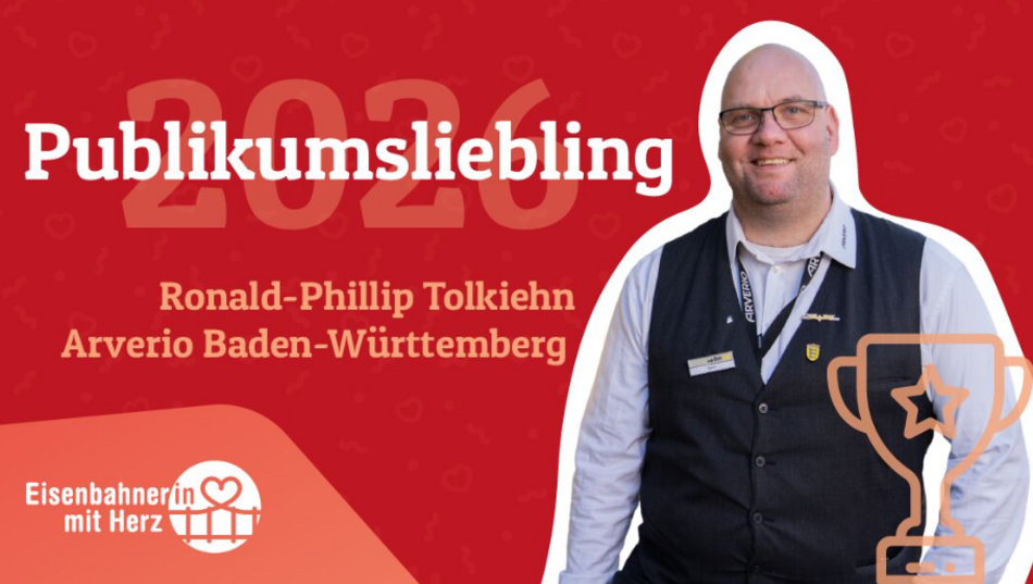 Der diesjährige Wettbewerb „Eisenbahner mit Herz“ ging im März 2026 zuende und hielt für Arverio eine wunderbare Nachricht bereit: Unser Kollege Ronald-Phillip Tolkiehn wurde zum Publikumssieger gewählt.