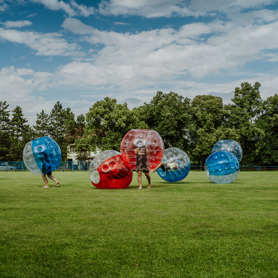 Du willst mal was Neues probieren? Beim Bubble Soccer spielst du in großen, aufgeblasenen Bubbles und tackelst deine Mitspieler*innen, während du versuchst, den Ball ins Tor zu schießen. So hast du Fußball mit Sicherheit noch nie gespielt!