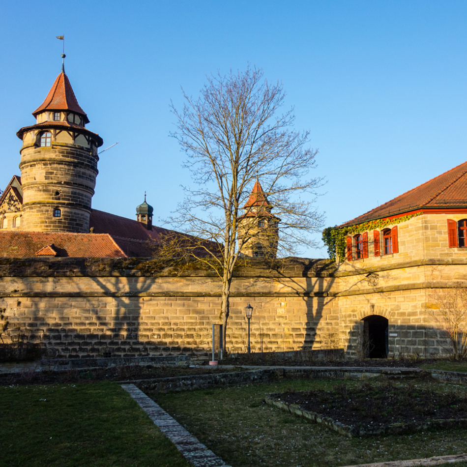 Nach deiner Ankunft am Bahnhof Wicklesgreuth kannst du auf einem Wanderweg durch den Wald entlang des Dorfbächleins schlendern und erreichst nach ca. zwei Kilometern die Festung Lichtenau. Tauche ein in die mittelalterliche Kulisse, nimm an einer Führung teil (möglich bis zum 31.10.) oder lass einfach die Magie des Ortes auf dich wirken.