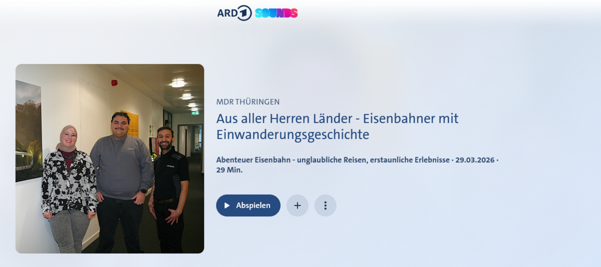 In der aktuellen Podcastfolge von „Abenteuer Eisenbahn – unglaubliche Reisen, erstaunliche Erlebnisse“ sprechen Filiz, Muhammed und Mahdi über ihren Weg zur Eisenbahn. Sie erzählen von ihren Einwanderungsgeschichten, ihrem Arbeitsalltag und den kleinen Momenten, die den Job besonders machen – wie überraschende Gesten von Fahrgästen.